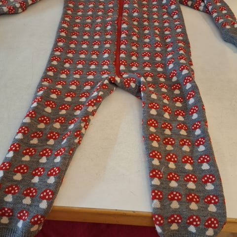 North Outdoor merinovillahaalari. Koko 110/116. Tämä on ollut todella tykätty ja jo vähän nukkainen, hihassa langannousu (voi helposti ommella piiloon) ja toinen polvi kulunut (ei kuitenkaan reikää). Materiaali on paksumpaa kuin esim POPin merinohaalarissa.