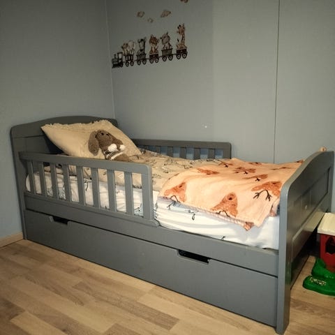 Valkoinen juniorsänky 140x70cm. Ehjä sänky, mutta maalissa kulumaa.