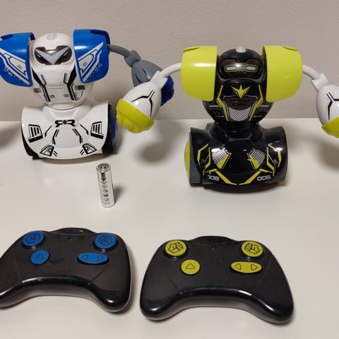 Kauko-ohjaimella liikutettavat robotit. Taistele toista robottia vastaan ja yritä kaataa vastustaja.