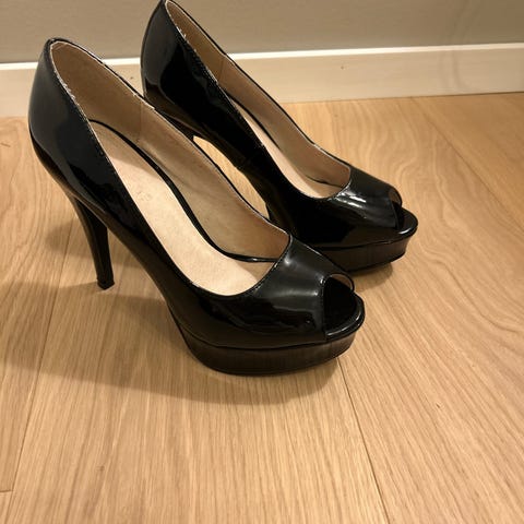 Bianco todella hyväkuntoiset, pari kertaa pidetyt mustat satiini korkokengät.