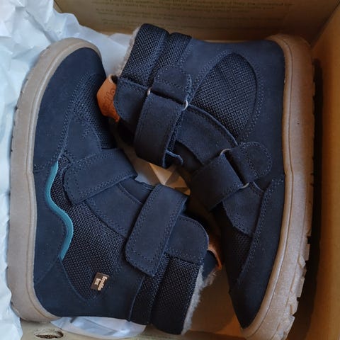 Froddo Tex Winter mustat paljasjalkakengät, koko 32: sisämitta n. 21,1 cm. Karvavuori, sopiva välikauteen ja pikkupakkaselle jos ei ole kovin viluvarvas. Yhden lapsen käyttämät, viimeiseksi pyyhitty ja laitettu suojasuihke. Tarranauhojen metallirinkuloissa ruostetta, joka tuli aika nopeasti käyttöönoton jälkeen; muuten ok kunto.