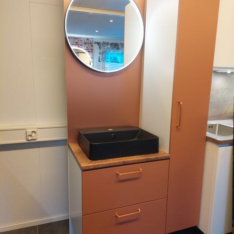 Myydään remontin tieltä erittäin siistit Puustellin kalusteet. Rungon leveys 1800, taso vähän pidempi n.1900. Rungon syvyys 450. Sisältää altaan, hanan ja bideen.