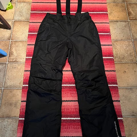 Vain pari kertaa käytetyt lasketteluhousut koten kunto erinomainen, pesty tuoksuttomalla pesuaineella. Kuminauhat lahkeiden sisällä, säädettävät tarranauhat vyötäröllä, kuminauhaa takana vyötäröllä, vetoketju, nappi..