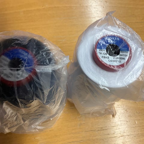 Coats SureLock Maxi ompelulanka, 5000 metrin pituinen, musta väri. Soveltuu erilaisiin ompelutöihin. Saumurilanka, 2kpl, käyttämättömät