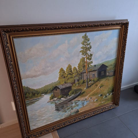 4 kpl öljyväri tauluja ja 1 puupiirros
