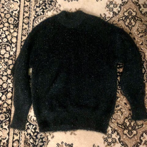 Vihreä neule perhoskuviolla.