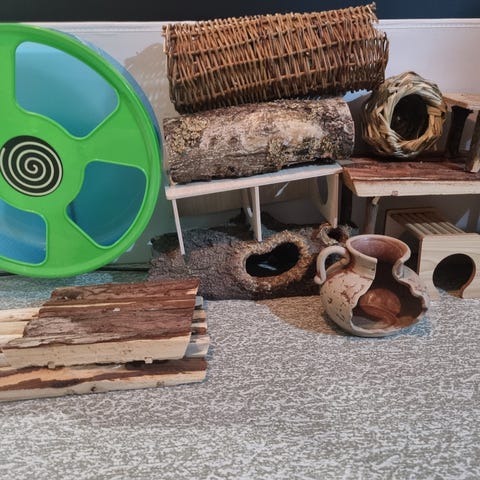 Kaikenlaista hamsterin/gerbiilin tai hiiren tavaraa.
