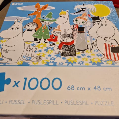 Clementoni Moomin 1000 palan palapeli, jossa on Moomin-aiheinen kuvitus. Palapelin koko on 1000 palaa, ja se soveltuu palapelin ystäville ja Moomin-faneille.