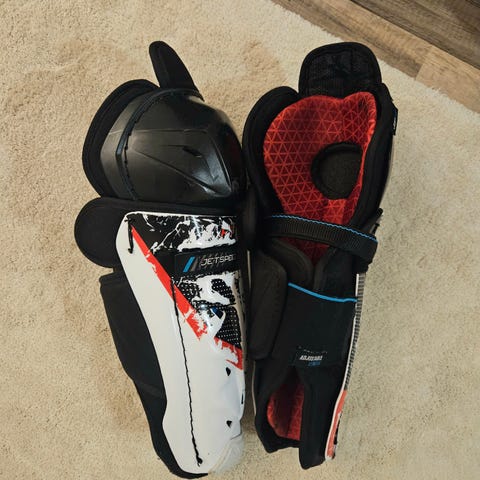 Myydään kilpapelaamiseen sopivat, laadukkaat ja hyvässä kunnossa olevat CCM Jetspeed FT485 polvisuojat, koko 12. Polvisuojan maalipintaa lähtenyt käytössä (kts.kuvat), mutta muuten polvisuojat ovat edelleen erittäin hyvässä kunnossa.