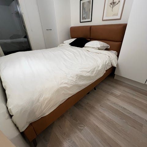 Hyvässä kunnossa oleva Trysil sängynrunko 140cm ja siihen Lönset sälepohja.