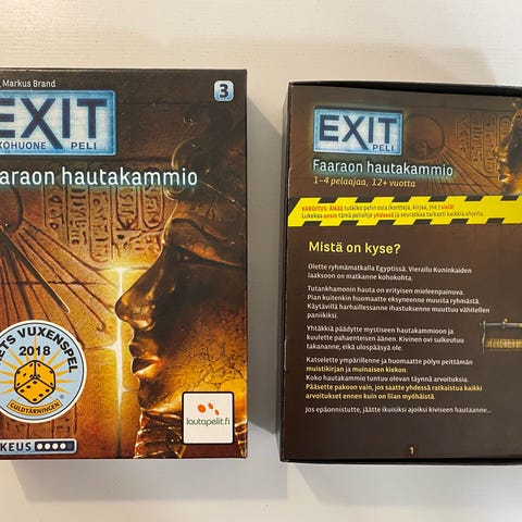 Pakohuonepeli. Pienen pieni pelaamisen jälki, muutoin ehyet osat.