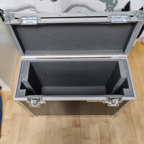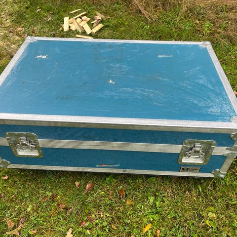 Transit Case Oy:n kuljetus/roudarilaatikko. Lukkohelat hieman hapettuneet, mutta toimivat hyvin. Koko korkeus 27cm, leveys 59cm ja pituus 50cm