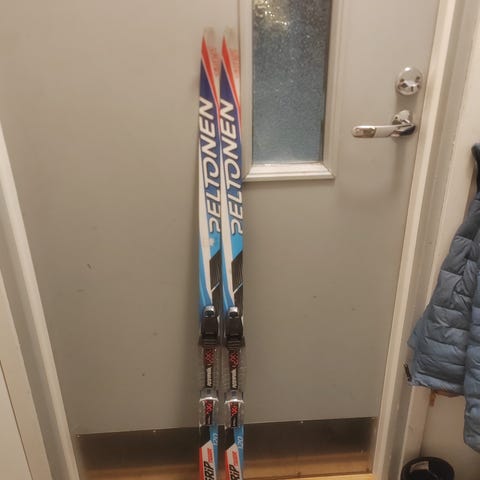 Annetaan päällisin puolin rähjäisen näköiset, mutta hiihdettävässä kunnossa olevat luistelusukset ilman siteitä. Pohjat on vielä ihan kohtalaiset.