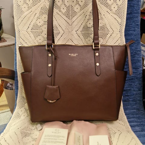 Radley shopperi Signature Tote Jacuard-kuosilla. Materiaali 100 % polyester, samoin vuori. Muut kohdat polyuretaania.
