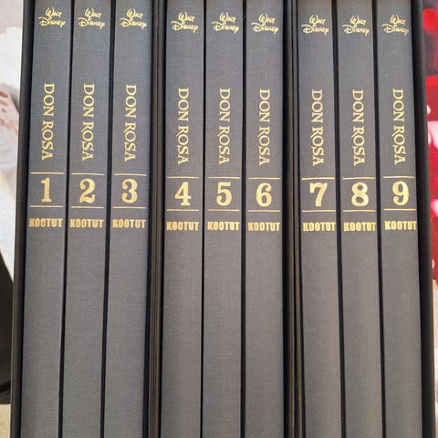 Myydään Don Rosan kootut -sarjan ensimmäinen osa, jossa kirjat 1-3. Ensimmäistä kirjaa on luettu hieman, muissa ei ollenkaan taitoksia. Pahvinen kotelo on myös hyvässä kunnossa.