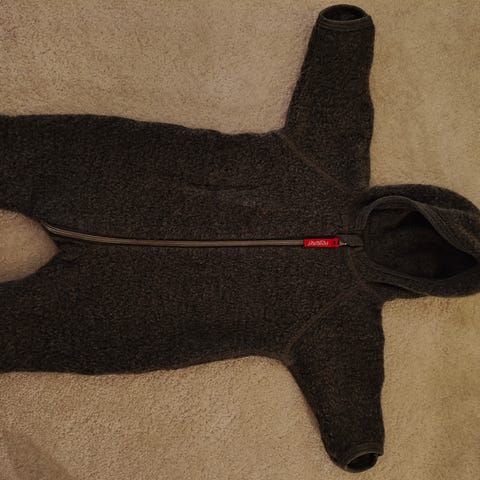 Aivan ihana Ruskovillan villafleecehaalari talvivauvalle! Meillä käytössä 1/25 syntyneellä helmikuusta toukokuuhun eli tilava koko. Nukkui päiväunensa tai oli siirtymillä tässä haalarissa toppapussissa. Olisi mahtunut pidempäänkin, mutta kesällä ei toki tarvittu.