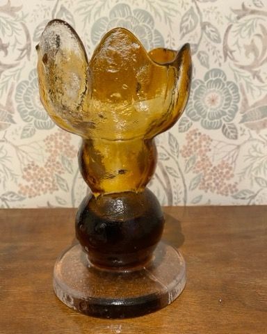 Tämä veistoksellinen vihreä lasimaljakko on peräisin 1960-luvulta.