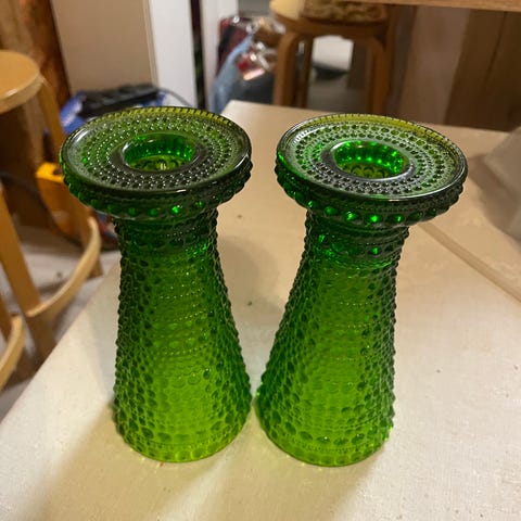 Myydään vihreä ehjä Iittala Kastehelmi kynttilänjalka / kääntömaljakko.