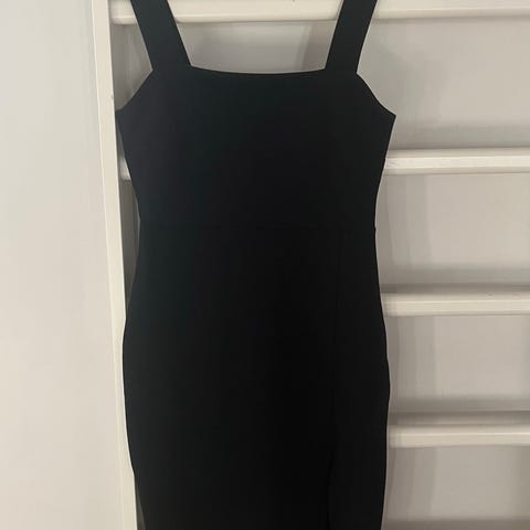 AMISU mekko mustassa värissä. Naisten koko 42. Mekossa on V-aukko ja lyhyet hihat, sopii erilaisiin käyttötarkoituksiin. Vyötäröllä kiristys ja helmassa kerroksia.