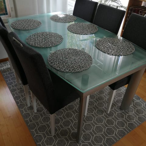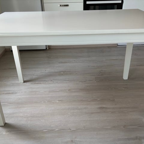 Hyväkuntoinen Ikean jatkettava musta ruokapöytä. Ilman jatkopaloja pöytä on 140cm pitkä, yhdellä jatkopalalla 180cm ja kahdella 220cm. Jatkopalat saa kätevästi pöydän sisällä olevaan telineeseen. Jatkopalojen kanssa tuoleja mahtuu pöydän ympärille parhaiten 6, mutta päihin saa istutettua tarvittaessa parikin jolloin 8 mahtuu syömään. Jalat irrotettavissa/kiinnitettävissä hylsyavaimella.