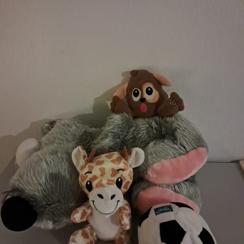 Kolmessa pehmolelussa näytti olevan patterien paikat, ei ole testattu toimiiko äänet. Isompi yksisarvis lelu laulaa jotain laulua, mutta ääni välillä rätisee kun kokeiltu, ei ole kyllä vaihdettu uusia pattereita..