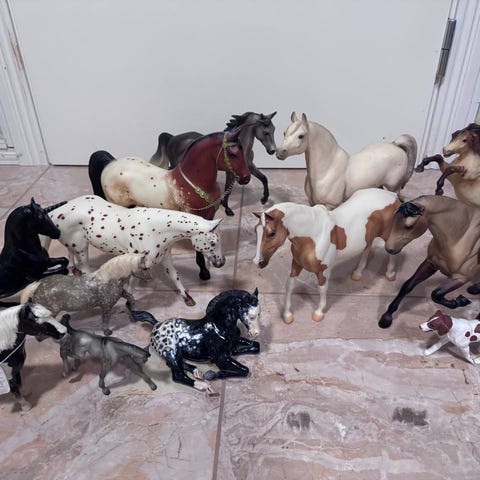 Breyer hevosia customointiin. Joitain on jo aloitettu mutta jäänyt kesken, toiset valmistunut mutta hajonneita. Mukana myös yksi itsetehty breyer kokoluokan hevonen.