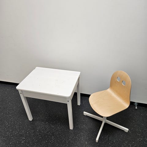 Lasten pulpettituoli, koko korkeus 68 cm, istumakorkeus 38 cm, istuinleveys 36 cm. Alkuperäisessä kunnossa, lakkaus osittain kulunut, samoin jaloissa kulumaa.