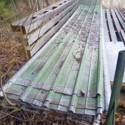 Myrskyn kaatamaa katajaa, eri mittaisia ja eri paksuisia pöllejä.