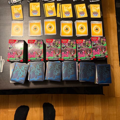 Boksien kortit eri sarjoista sword & shield - Mega Evolution ajalta. Tuplia ei ole mukana.