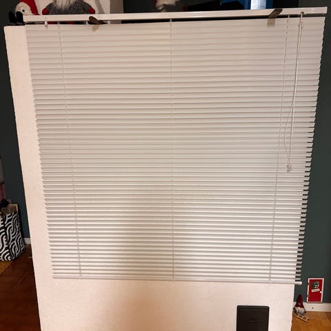 Vähän aikaa käytössä ollut sälekaihdin, helppo kiinnittää kahdella ruuvvilla ja kaikki tarvittava mukaan leveys 170cm korkeus 160cm