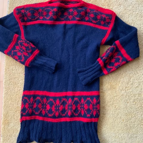 Ihana, itselläni toiminut oversize neuleena. Pompulalangasta neulottu. Helmassa ohut pyöreä kuminauha joka pitää paidan lanteilla/ vyötäröllä.