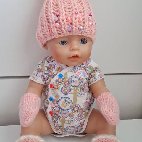Uudet neulotut tossut, pipo ja tumput nukelle Baby Born