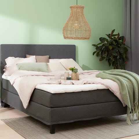 Sängynpääty vaaleanharmaa kangas