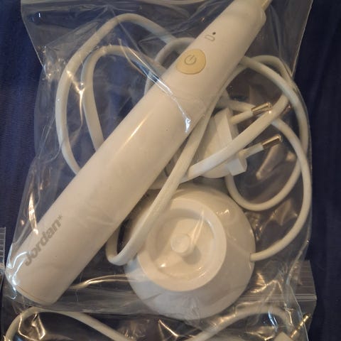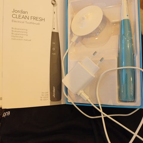 Käyttämätön Jordanin sähköhammasharja alkuperäispakkauksessa. Pakkauksessa mukana harjaspää.