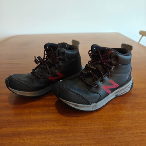 New Balance lasten kengät, koko 32, unisex. Väri musta, materiaali tekstiili ja synteettinen. Kengissä tarrakiinnitys ja kumipohja.