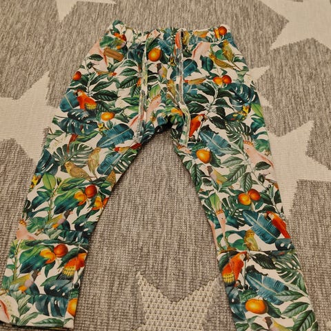 Metsolan kankaasta ommellut housut. Näitä käytetty paljon ja se näkyy. 98/104cm.