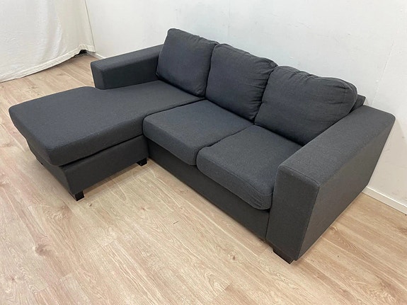Loisto kunnossa olevaa tummanharmaa avokulmasohva