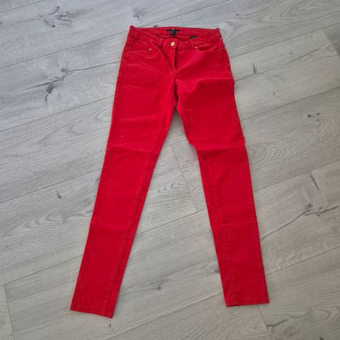 Matalahkot kapeat kirkkaanpunaiset farkut, laput leikattu pois mutta kokoluokkaa 36/38, joustoa ts. elastaania löytyy.