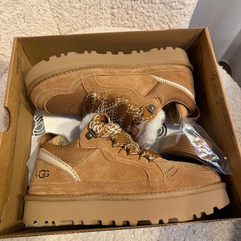 UGG talvikengät koossa 40. Väriltään vaaleat, valmistettu materiaaleista, jotka sopivat kylmiin olosuhteisiin. Kengät on suunniteltu tarjoamaan lämpöä ja mukavuutta talvikäyttöön.