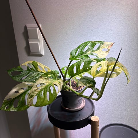 Hieno Monstera Albo variegata yksilö, joka tekee upean näköisiä lehtiä, jossa on kaunista valkoista, vaaleanvihreää ja tummanvihreää sekä marmorikuviota. Monsteran voi istuttaa semihydroon, LECAan multaan tai muuhun kasvupohjaan.