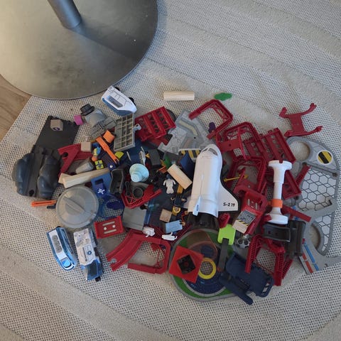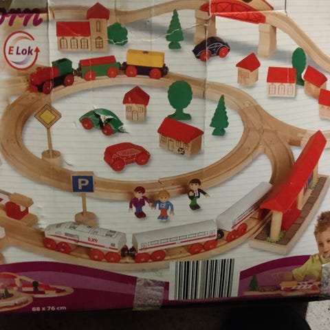 Lidlin Junarata lelu, joka sisältää puiset radat ja erilaiset lisäosat. Astronautti teema. Yksi osa (punainen sillan osa) on rikki, mutta tallessa ja saa varmasti teipillä toimimaan moitteettomasti. Ja akkukäyttöistä junaa ei ole. Kokoamis ohje on tallessa, sekä se löytyy myös lidlin nettisivuilta tuotenumerolla.