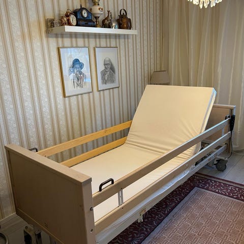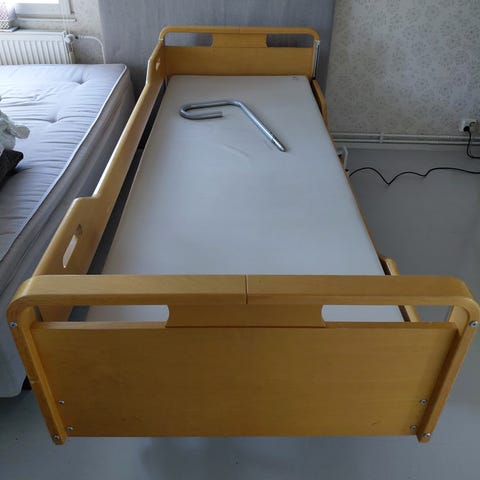 Saksalainen wissner bossenhof Sentida sairaalasänky (Myös Unikulma myy). Selkä ja jalat nousevat erikseen. Laidat voi laskea ja nostaa puolilaitaa kerrallaan. Korkeutta voi säätää lattiaan kiinni tai hyvin korkealle. Moottorisängyn nostokyky on 200 kg. Mukana patja. Sänky on sairaalatasoa, jämäkkä, 130 kg, mutta liikkuu pyörillä kevyesti. Tarvittaessa mukaan nostokahva ja tuet .