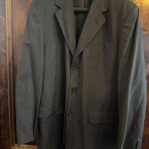 Täysmusta miesten puvun takki, koko 54. Materiaali hienoa villaa. Takissa on klassinen leikkaus, kaksi nappia edessä ja takana kaksi halkiota takaamassa parhaan istuvuuden. Vuori oranssia silkkisatiinia