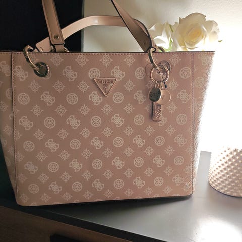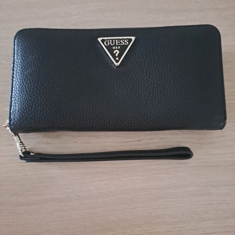 Guess lompakko vaaleassa beigen sävyssä. Lompakossa on vetoketjukiinnitys ja sisätilat on jaettu useisiin osastoihin, mukaan lukien vetoketjullinen kolikko-osasto. Materiaali on tekonahkaa.