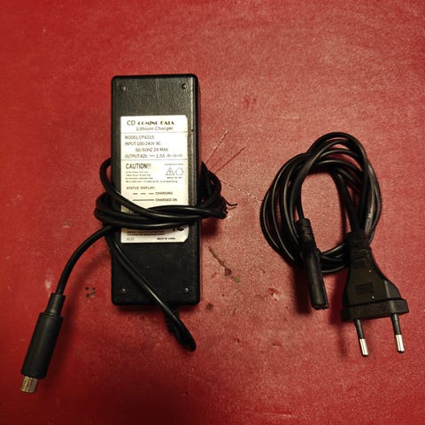 Myydään tarpeettomana sähköpotkulauta tai sähköskootteri laturi seuraavalle.
