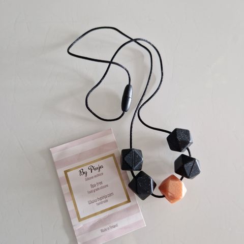 Myydään vähän käytetty imetyskoru. Helmet silikonia.