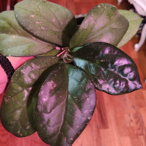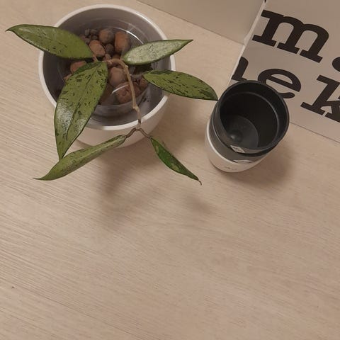 Erittäin kaunis posliinikukka, Hoya Verticillata heart leaf, jossa upeat, paksut, kiiltävät tummanvihreät lehdet ja jossa on spalshiä. Istutettu semihydroon, mutta voi istuttaa myös muuhun kasvupohjaan. Hyvässä kasvussa, kasvattanut juuri uuden lehden. Hp. 19 e.