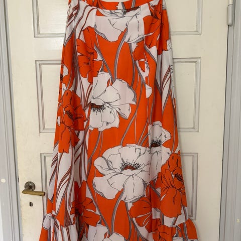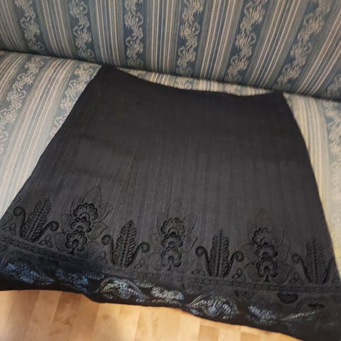Uusi ja käyttämätön mustakultainen hame satiinista kiiltävää materiaalia. Nyöritys edessä. Ovh 69,99€.