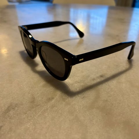 Huippulaadukkaat Oliver Peoplesin Shaefer aurinkolasit. Runko on titaania, eli aurinkolasit ovat todella kevyet. Mukaan suojakotelo ja puhdistusliina.