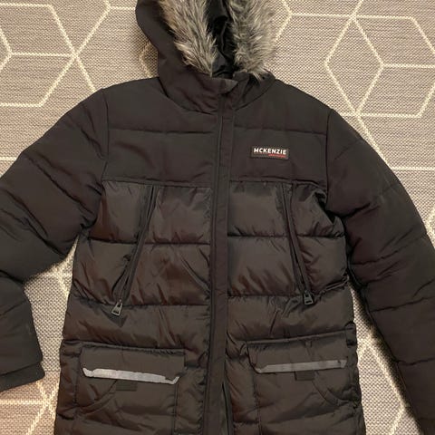 Toppatakki kokoa lasten S (8). Meni meillä varmaan noin 120-140cm haarukassa.